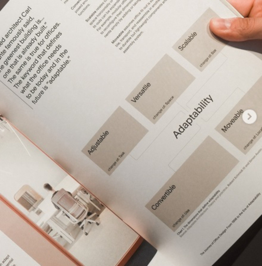 Practic, ghidul te învață principiile de bază ale biroului adaptabil, îți arată beneficiile pe care le aduce acest tip de arhitectură și vine cu exemple practice de reușită, plus o listă concisă de instrumente utile pentru soluții de tipul „birou în birou”. Ghidul Mute pleacă de la premisa că actuala arhitectură a spațiilor de lucru este deja depășită de nevoile și provocărilor stilului de muncă modern și argumentează cu faptul că într-un procent destul de mare spațiile office la nivel global rămân neînchiriate în momentul de față. Soluția o reprezintă sistemele modulare care permit transformarea birourilor cu costuri mici de la un chiriaș la altul, de la o ramură de activitate la alta, printr-o simplă rearanjare.