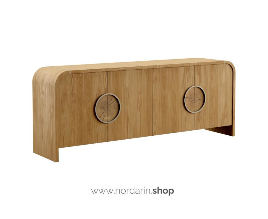 Comoda Arc e descrisă sub forma unei piese rafinate, inspirate din silueta feminină, cel puțin la nivelul rotunjimilor laterale, dar și al nivelului de adâncime care o recomandă pentru spații înguste. Păstrează aerul atemporal al colecției, dar este piesa Arc cu cea mai evidentă trăsătură a stilului clasic prin design. Dispune de spații interioare de depozitare situate în spatele a patru uși frumos decorate cu cercuri în relief, pentru marcarea sistemului de închidere/deschidere. Apropo, bufetul Arc dispune de tehnologie modernă: ușile sunt prevăzute cu sistem de închidere cu amortizoare.