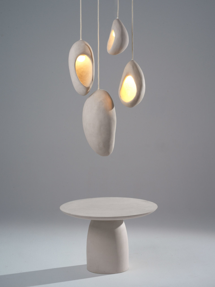 Cele mai numeroase sunt corpurile de iluminat, lumina galbenă ducând la un contrast cald, plăcut și intim în asociere cu formele din beton în finisaj natural. Există mai multe modele de tip pălărie sau păstaie, majoritatea vânzându-se sub formă de lămpi atârnătoare cu mai multe abajururi.