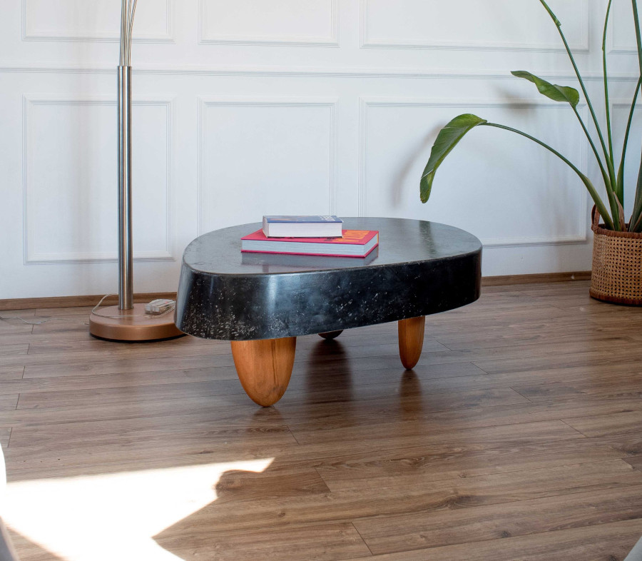 Măsuțele de cafea sunt apoi printre cele mai numeroase și nimerite piese Koncret, ba rotunde, ba rotunjite numai, dar cel mai adesea joase, suple, cu un aspect feminin și jucăuș, care nu trădează puterea materialului. La Koncret cel mai des se folosește tehnica GFRC, adică beton armat cu fibră de sticlă, asigurând rezistență și o greutate nu foarte mare.