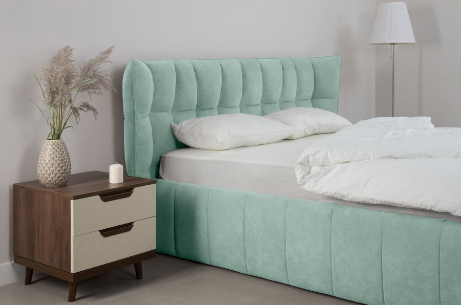 Patul Happy poate că nu se încadrează la criteriul de paturi joase, dar se înscrie la categoria paturi ispititoare prin culoarea de un albastru ce inspiră serenitate și căldură. Contribuie la acest efect și modelul de cusături aplicate tapițeriei, dar și forma tăbliei înalte și lungi cu margini ușor curbate pentru a transmite ideea de îmbrățișare. Se poate comanda în variantă personalizabilă și i se poate adăuga ladă de depozitare.