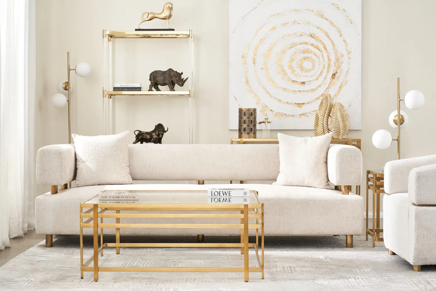 Ca măsurători propriu-zise, o canapea nu poate depăși două treimi din lungimea peretelui în fața căruia va fi amplasată, iar următoarea piesă de mobilier a camerei trebuie să ajungă la dimensiunea de 2:3 din cea a canapelei. Așadar, nu pot fi folosite piese de mobilier de aceeași dimensiune, ci fiecare va reprezenta două treimi din mărimea celei anterioare.