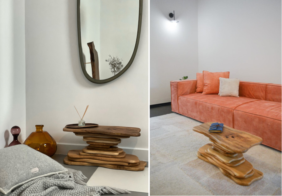 Cele mai multe piese Romanian Wood sunt mese și console sau comode media, cu forme neașteptate și neregulate, gata să dea amenajării un look original și să valorifice spațiul la maximum. Lemn și metal, lemn și pâslă, picioare de pat realizate sub forma unor mingi din lemn, polițe suspendate sau măsuțe realizate prin suprapunerea unor felii de lemn de mărimi diferite – toate sunt executate manual, după tehnici tradiționale de cioplire și cel mai adesea din lemn reciclat sau recuperat.