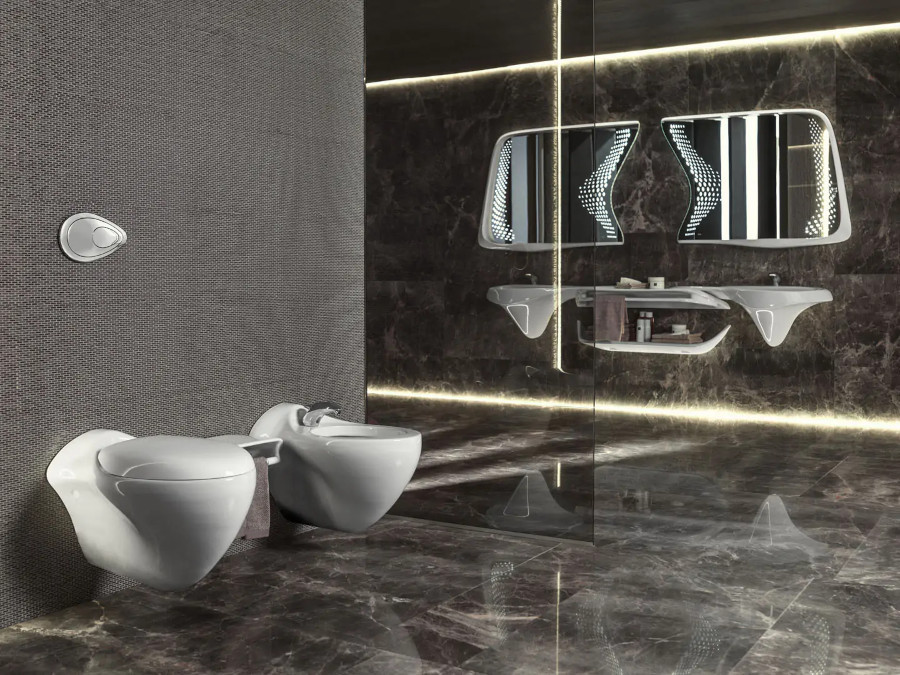 Piesele ceramice sunt de culoare albă strălucitoare, au un design lichid atipic și o funcționalitate deplină odată ce ți-ai dat seama cum funcționează. Sunt piese caracterizate de un ușor aer minimalist, nu ocupă mult spațiu și lasă la imaginația clientului (sau a proiectantului băii) alegerea tonurilor cromatice pentru gresie și faianță, fără a ridica pretenții.