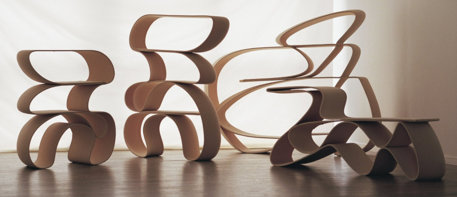 Piesele au rol funcțional de depozitare în principiu, constând în mai multe exemple de etajere sau comode atât de speciale prin formă încât se pot integra în orice locuință contemporană. Au aspectul unor fâșii de lemn îndoite, răsucite, întinse și apoi răsturnate, dar nu întâmplător, fiindcă modelele recreează de fapt circuitul gândacului de scoarță și urmele pe care le face acesta în trunchiul copacului. Mobilierul Garland duce așadar spre stilul de design organic, cu funcționalități reale integrate unor contururi inedite.