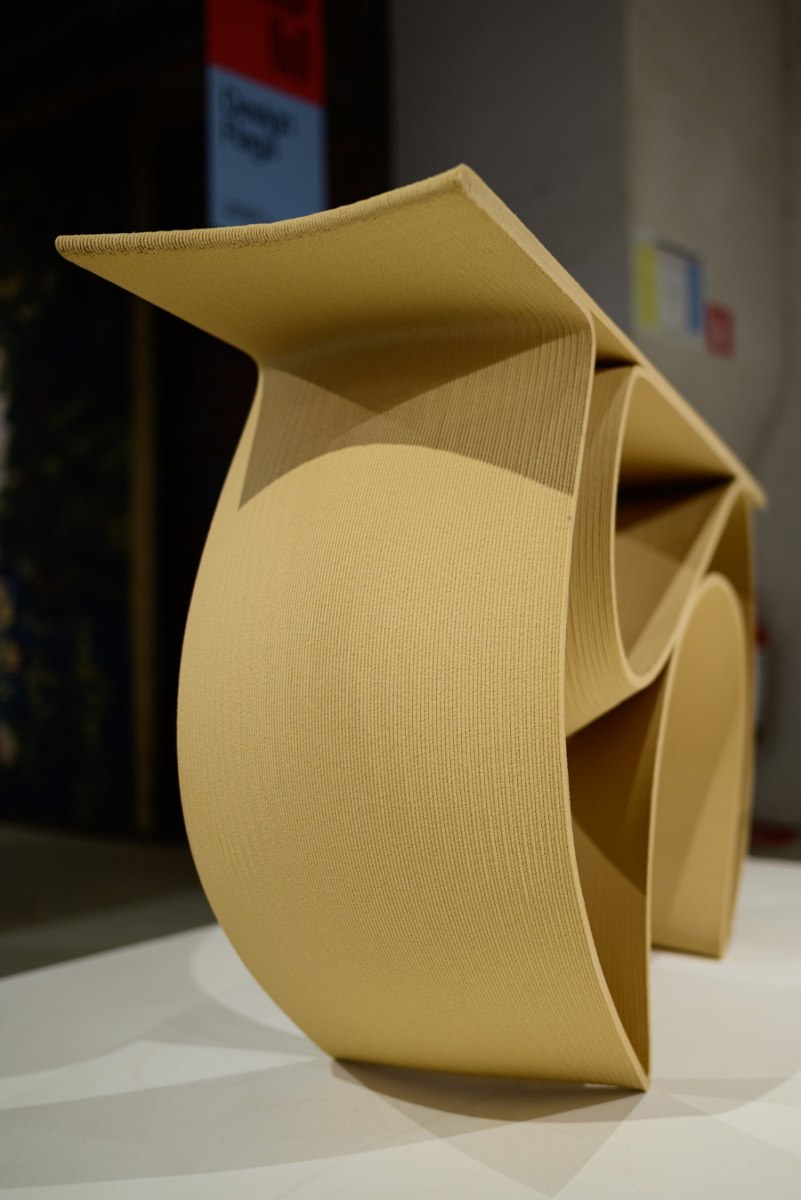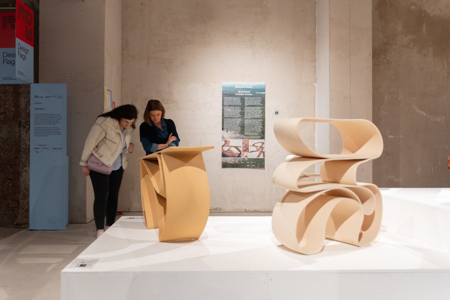 Expoziția aflată zilele acestea la București prezintă mai multe piese de mobilier realizate din chiar lemn distrus de micul gândac de scoarță: „Un compozit din lemn care conține lemn de molid deteriorat de gândacul de scoarță pentru imprimare 3D”, după cum se arată pe site-ul RDW. Practic, din deșeuri naturale. Și fiind vorba de inovație, fiecare piesă a expoziției se încadrează producției circulare, în așa fel încât să nu ducă la reziduuri și să poată fi reciclat iar și iar. Prin topire, piesele se pot prelucra în forme noi.