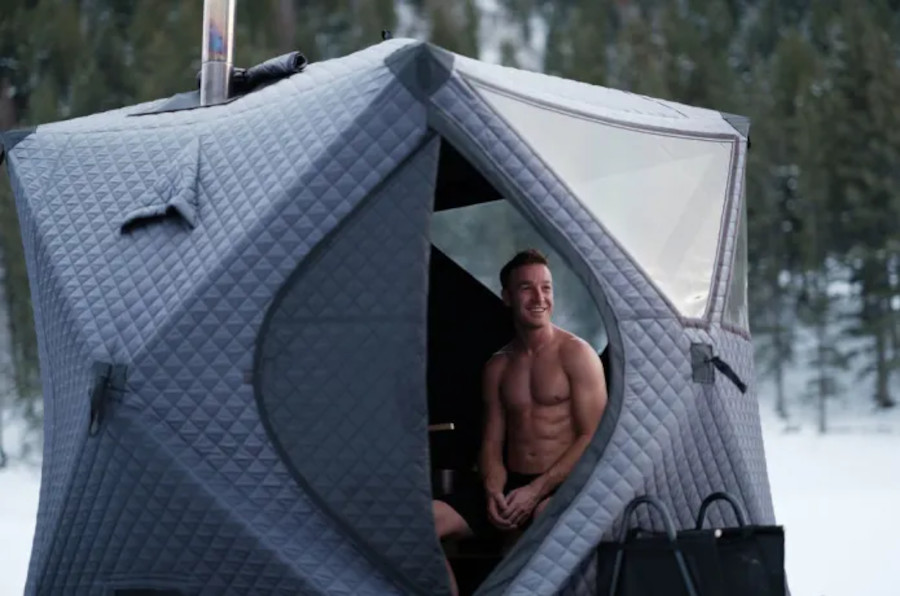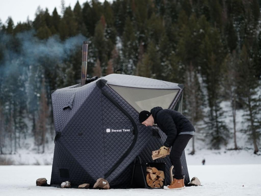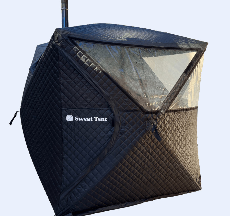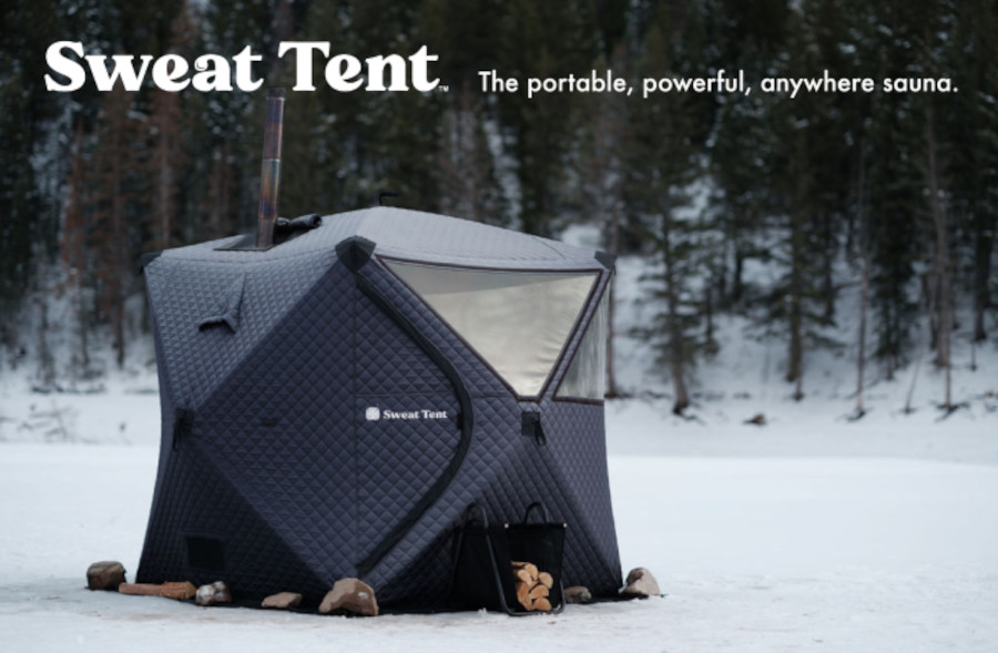 Sweat Tent reprezintă o inițiativă care îți permite să te bucuri de saună în orice loc ai vrea să ajungi, pornind chiar de la propria curte. După cum îi spune și numele, are caracteristicile unui cort, putând fi strânsă și purtată în vacanțe, excursii, locuri sălbatice. Este o saună demontabilă și pliabilă, cu un sistem de montare ultrarapid și simplu, necesitând doar trei minute. Poate fi montată de două persoane sau chiar de una singură, pe modelul unui cort. Are de altfel aspectul și forma unui cort, dar e dotată cu sobă din aluminiu și alte „ingrediente” specifice saunei.